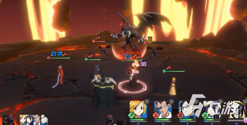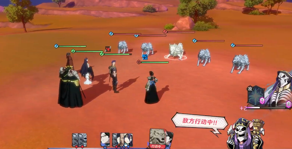 戰(zhàn)斗則是包含初始行動順序、速度的半回合制游戲,就是那種可以拉條、推條的玩法,這在漫改游戲中算是一種非常成熟的玩法系統(tǒng),有很多游戲案例。游戲可以上陣4位角色外加無敵的骨王,骨王可以使用技能而且無法被攻擊,其他角色則是和非常經(jīng)典的普攻、被動、小技能、大招構(gòu)成。