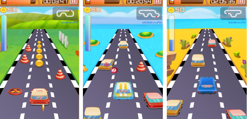 本作很像是一款跑酷主題的模擬駕駛飛車的作品,你將駕馭著可愛小汽車完成躲避、收集金幣等任務(wù),小賽車造型卡通再結(jié)合明亮的背景代入感更強(qiáng),路障和炸彈等道具會(huì)在跑酷路線上呈現(xiàn)出來,精彩好玩的賽車跑酷機(jī)制也令本作更吸引人,操作方面質(zhì)感十足給人真實(shí)開車跑酷的既視感,卡通飛車總動(dòng)員這個(gè)APP能同時(shí)吸引跑酷、競(jìng)速愛好者。