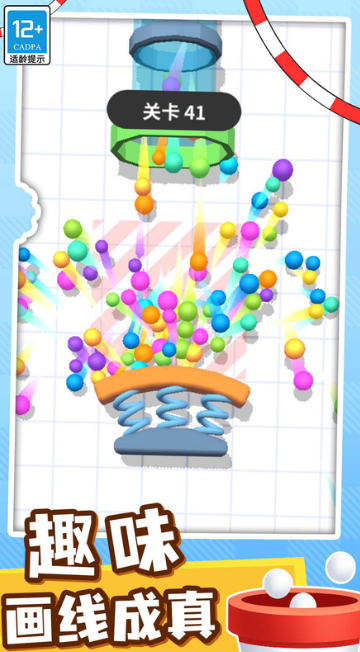 玩這款游戲得懂點小物理知識,畫的線會受重力影響,你的任務(wù)是畫架子讓小球滾進(jìn)桶里。有的關(guān)卡里有水,畫的線碰到水會變軟,就得換位置重新規(guī)劃,2025年還新增了雙球模式,要同時控制兩個不同顏色的小球,讓它們分別掉進(jìn)對應(yīng)的杯子里,難度升級但更刺激。另外還有重力反轉(zhuǎn)關(guān)卡,場景里的一切都會顛倒,得徹底改變思路規(guī)劃路線,每次靠物理知識過關(guān)都覺得超厲害。