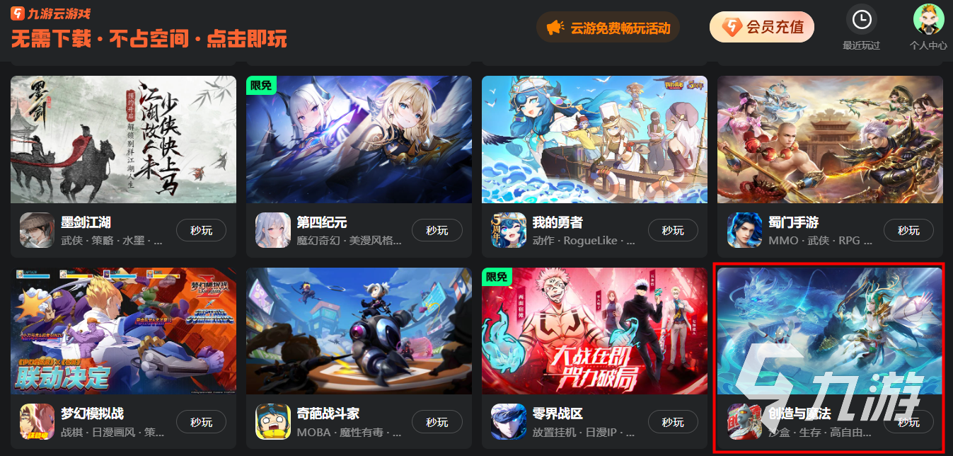 創(chuàng)造與魔法云游戲官網(wǎng)已經(jīng)列在上面了,大家只需注冊(cè)并登錄九游的云游戲頁面,就能直接從網(wǎng)頁端啟動(dòng)游戲并體驗(yàn),相較于在電腦上安裝模擬器下載游戲要便利了不少,也不用擔(dān)心自己的硬件配置不足帶不動(dòng)。