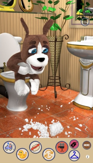 這款游戲里,大家將可以擁有一只可愛的小狗狗,你可以給它洗澡、喂它吃飯、和它做游戲等,它總是能做出各種滑稽動作來博你開心。游戲里,你每說一句話,它就會跟著你的腔調(diào)說同樣的話,準令你大感驚奇,內(nèi)心歡喜。游戲為了方便你操作,設(shè)計了數(shù)十個按鍵,只要你輕輕一點,就能和狗狗做出許多截然不同的互動。