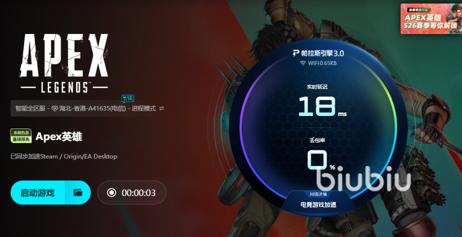 好了,以上就是關(guān)于APEX英雄加速器的全部介紹了,這款作品不僅玩法豐富,道具多樣,還支持使用各類槍械與技能搭配,戰(zhàn)斗體驗十分暢快。而使用biubiu能夠有效優(yōu)化網(wǎng)絡(luò)連接,使用后,大家可以明顯感受到游戲畫面加載更加流暢,進入對戰(zhàn)后,無論是施放技能還是完成各類精細操作,都能更加順暢自如。整體視覺表現(xiàn)和響應(yīng)速度獲得顯著提升,這些都得益于工具背后高效的網(wǎng)絡(luò)優(yōu)化能力,讓大家的對局更加流暢穩(wěn)定。如果小伙伴們心動了,就趕快去試一試吧。