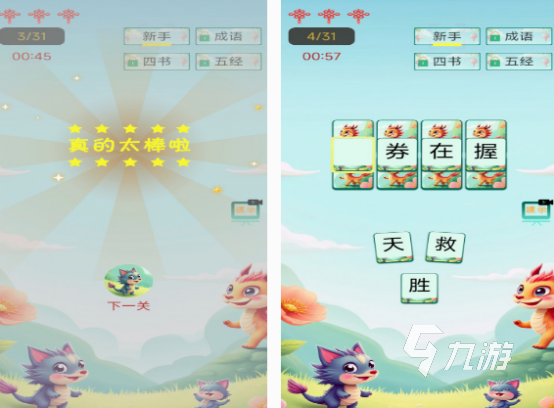 在這款可展開成語猜謎闖關(guān)的游戲中,玩家有一定的成語積累能力,基本上就可順利的,在每個關(guān)卡中完成任務(wù),涵蓋超多以詩詞以及成語等有關(guān)的。既可在缺失的文字當(dāng)中,通過填入合適的文字,使成語或者詩詞成立,也需要在玩的過程中,有一定的時間觀念,因為只有在規(guī)定時間內(nèi)完成挑戰(zhàn),才能進入下一個觀看。