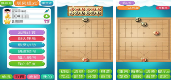 在我國(guó)的古老文化中,象棋是非常重要的,無論是老年人或者是小孩子們,都喜歡在閑著無聊時(shí)下下象棋,這款游戲中支持多種不同的模式,包括人機(jī)對(duì)戰(zhàn)或人人對(duì)弈的模式等等。即可在單機(jī)模式之下,和其中的npc角色對(duì)抗,又可在聯(lián)網(wǎng)的狀態(tài)下,和自己的好友相互較量棋藝,一路披荊斬棘,從一名菜鳥成功逆襲為特級(jí)大師。