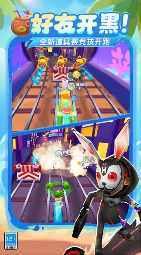 早在多年之前就已成功上線,剛開始這款游戲只支持單機(jī)模式,你操控其中的人物角色,在地鐵軌道中快速奔跑,及時(shí)躲避敵人的追擊,沿途收集大量金幣和道具,讓自己奔跑的速度更快,而現(xiàn)在經(jīng)過全新升級(jí)后,在原有的單機(jī)模式之下,又支持了3v3對(duì)戰(zhàn)的模式,可和更多好友相互奔跑。在奔跑時(shí)巧妙做出跳躍或翻滾的動(dòng)作,會(huì)讓你心曠神怡在充滿動(dòng)感和色彩的環(huán)境中,超越自己。