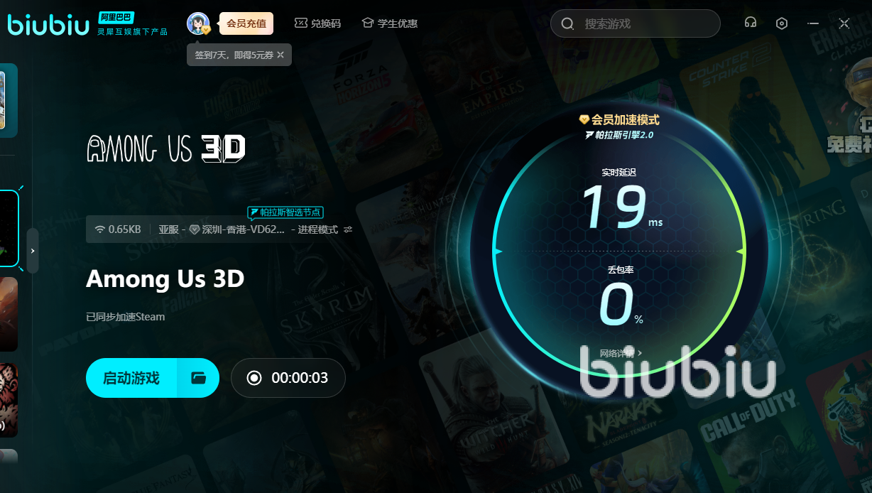 AmongUs3D作為一款新出的海外佳作,如今暫時(shí)還沒有上線國服。所以我們必須先使用biubiu,經(jīng)過穩(wěn)定加速后,又能讓你有機(jī)會(huì)進(jìn)入新的太空船上執(zhí)行自己的任務(wù)。新用戶的話可領(lǐng)取三小時(shí)的免費(fèi)加速,然后新老用戶輸入【biubiu不卡頓】,即可額外領(lǐng)取三天免費(fèi)加速。若是進(jìn)入太空船后太卡的話,就無法及時(shí)做完游戲內(nèi)的任務(wù)。這時(shí)采用加速器后,作為船員的我們才可加快節(jié)奏去修復(fù)太空船。
