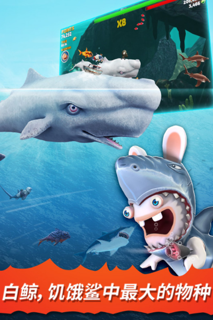 可愛鯊魚按照自然法則,實(shí)現(xiàn)大魚吃小魚的進(jìn)化過程,不斷吞噬其他的小魚小蝦、海龜?shù)葎?dòng)物,完成體型的膨脹和技能的增強(qiáng)。角色設(shè)計(jì)了幾十種不同類型的鯊魚,玩家需要在不同場景里尋找可以吞噬的海洋目標(biāo),但是也要避開人類獵手的追捕獵殺。從普通的河流,到充滿危險(xiǎn)的深海區(qū)域,鯊魚需要探索許多場景,才能最終成長為海洋霸主。