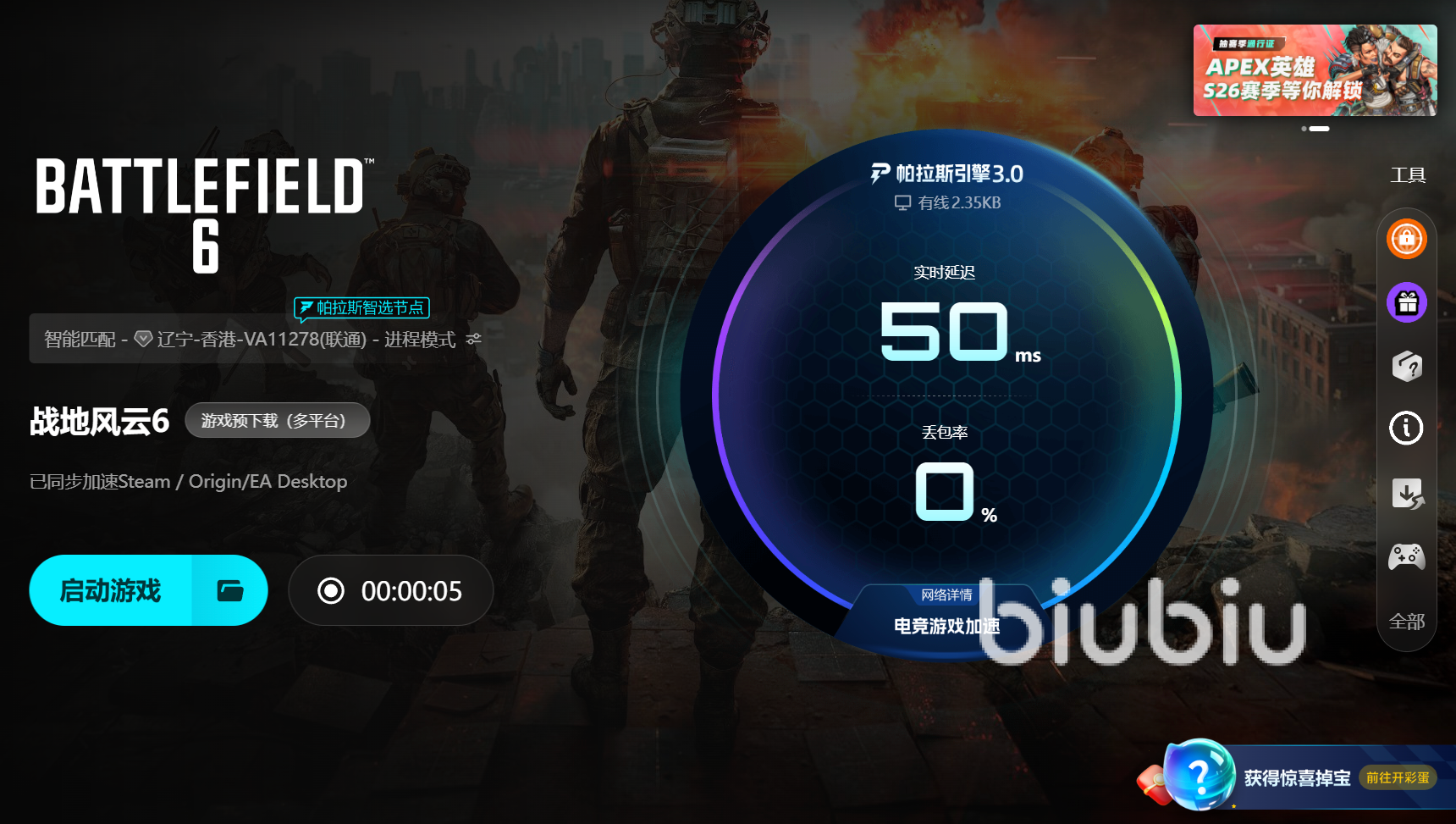 如果你也正在為戰(zhàn)地6閃退而頭疼,不妨在進入戰(zhàn)局前提前開啟biubiu加速器。它能幫助你穩(wěn)定網絡,減少異常退出,把精力真正投入到戰(zhàn)術配合與戰(zhàn)斗執(zhí)行中,而不是一次次被閃退拉出戰(zhàn)場的挫敗感里。