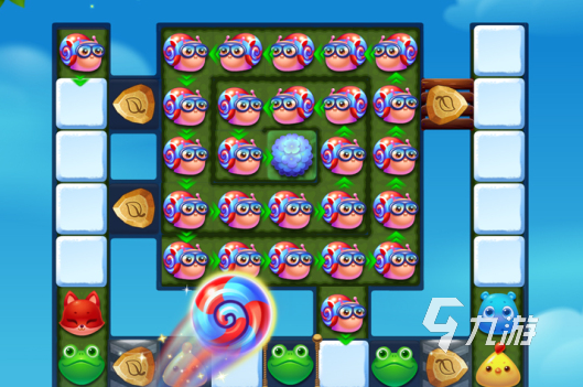 以三消作為基礎(chǔ)玩法,但是如果玩家連接的是3個(gè)以上的圖標(biāo)的話還能生成強(qiáng)力的炸彈跟道具,成片式消除棋盤上的圖標(biāo),帶來非常爽快的感覺。