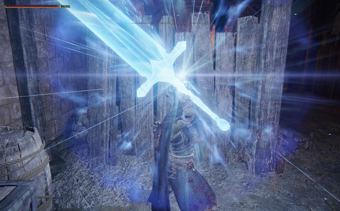 而談及魔法劍(無論是其普通形態(tài)還是凌厲的突刺姿態(tài)),其獨(dú)特的貫穿戰(zhàn)技更是令人嘆為觀止。玩家只需靜心蓄力,而后大步流星地向前躍進(jìn),一瞬之間,萬千鋒芒匯聚成一股不可阻擋的力量,正面突破重重阻礙,同時(shí)構(gòu)筑起堅(jiān)不可摧的防御壁壘。此番壯舉,僅需消耗約九點(diǎn)的專注值,便能讓玩家體驗(yàn)到前所未有的戰(zhàn)斗快感,自然成為了眾多玩家的心頭好。