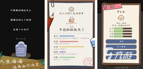 自由選擇空間度最大,玩家從開始出生就可以決定性別年齡以及體重等基本屬性。在后續(xù)選擇上,玩家既可以跟隨主流,完成上學打工程老板這一條主線,也可以通過隨機按鈕選擇不同的道路進行成長,每一條選擇會有兩到三個不同答案。在墓地板塊中,玩家甚至可以提前安排自己的身后事。