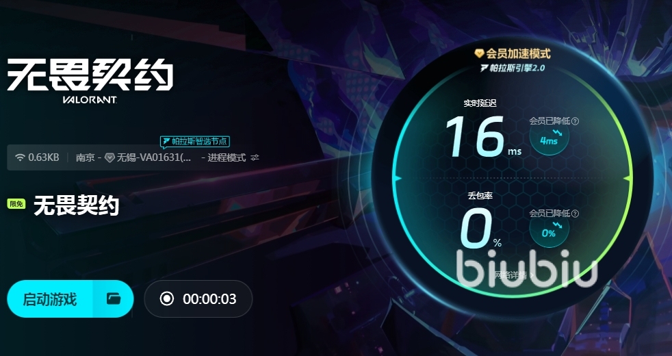 biubiu加速器是專門為游戲玩家而打造,可以一鍵解決游戲中的網(wǎng)絡(luò)延遲、加載緩慢、掉線以及卡頓等一系列的問(wèn)題給玩家提供穩(wěn)定的網(wǎng)絡(luò)環(huán)境。無(wú)畏契約是一種對(duì)于網(wǎng)絡(luò)要求比較高的游戲,擁有穩(wěn)定的網(wǎng)絡(luò)則意味著反應(yīng)的速度更快,會(huì)具備精準(zhǔn)的射擊體驗(yàn)。讓玩家在戰(zhàn)斗的過(guò)程中就能有機(jī)會(huì)搶占先機(jī),可以輕松地應(yīng)對(duì)一些復(fù)雜的戰(zhàn)局。所以還在擔(dān)心網(wǎng)絡(luò)不穩(wěn)定影響到游戲的體驗(yàn),那就趕緊來(lái)關(guān)注一下這款加速器吧,可以讓玩家在游戲中隨時(shí)都能享受順暢。