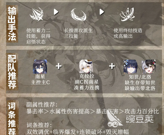 裝備的副屬性應(yīng)該按照暴擊率還有水屬性傷害提高以及暴擊傷害,還有攻擊力百分比的順序來選擇。這么選擇的原因是很簡單的,他的技能傷害本身就是以水屬性作為核心。水屬性傷害提高,就可以直接加成所有的技能輸出。暴擊率就是保證穩(wěn)定輸出的關(guān)鍵,應(yīng)該優(yōu)先堆到50%以上,就可以避免頻繁出現(xiàn)白字傷害。之后還可以補(bǔ)充暴擊傷害,可以放大暴擊時的傷害上限。最后用攻擊力百分比去補(bǔ)充基礎(chǔ)性的傷害,這樣的搭配就可以讓每一點(diǎn)的屬性就可以直接用在刀刃上,可以避免屬性的浪費(fèi)。裝備特效詞條首選,雙效調(diào)優(yōu),還有臨界爆發(fā)。雙效調(diào)優(yōu)就可以提升技能銜接的流暢度。