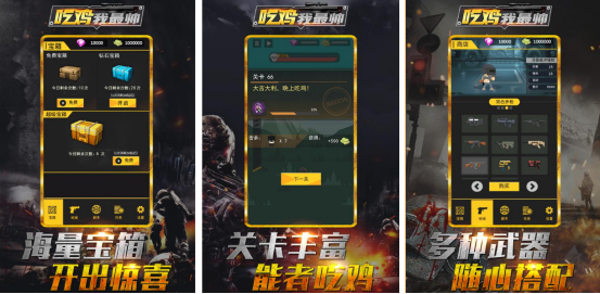 經(jīng)典吃雞題材,在闖關(guān)并消滅敵人時(shí),需要展現(xiàn)出精準(zhǔn)的射擊技能,把握好射擊的主要時(shí)機(jī),用手中的槍械,將面前所有的敵人全部擊敗,后即可輕松獲勝,而每次在開槍時(shí),都會(huì)讓自己感受到特別爽快的爆頭體驗(yàn),在不同射擊場景中,展現(xiàn)卓越的技能體系,將會(huì)成為全場上最帥的英雄。