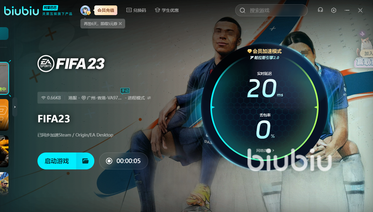 fifa23目前來(lái)說(shuō)還是一個(gè)國(guó)外大作,所以暫時(shí)還沒(méi)上線國(guó)服。這時(shí)可以利用biubiu,就能突破隊(duì)伍之間的限制,直接來(lái)到海外球隊(duì)中開(kāi)始踢球。新用戶(hù)的話可領(lǐng)取3小時(shí)的免費(fèi)加速,另外新老用戶(hù)輸入【biubiu不卡頓】,又能額外領(lǐng)取三天免費(fèi)加速。若是踢球途中太卡的話,有可能將球直接送給敵方。所以必須用上加速器,才能得心應(yīng)手的運(yùn)好腳下的球,避免被人快速搶走。