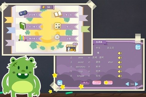 游戲擁有多種英語教學(xué)模式,從簡(jiǎn)單的拼單詞闖關(guān)再到練習(xí)各種英語句型等等內(nèi)容向你開放。你可以從最簡(jiǎn)單的音節(jié)開始學(xué)起,游戲擁有最嚴(yán)肅的教學(xué)內(nèi)容,搭配娛樂的教學(xué)方法讓你在歡樂中學(xué)會(huì)更多英語知識(shí),正確的英語發(fā)音再配上詳細(xì)的詞語解析讓每一個(gè)從零開始的玩家都可以更快速上手。