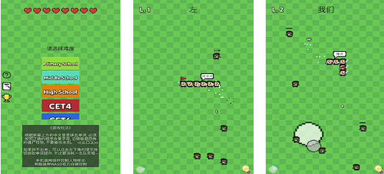 在龐大的字母網(wǎng)格中尋找正確的字母出來拼接,讓其組合成為正確的單詞,整個(gè)闖關(guān)過程充滿了趣味性,這不僅需要玩家一定的單詞詞匯量,而且對(duì)于眼力和反應(yīng)能力也有一定的要求。游戲難度還會(huì)隨著闖關(guān)越來越高,到后面玩家需要更快的反應(yīng)速度才能夠順利通關(guān),簡(jiǎn)樸的游戲畫面搭配簡(jiǎn)單的英語教學(xué)讓喜歡英語的玩家愛不釋手。