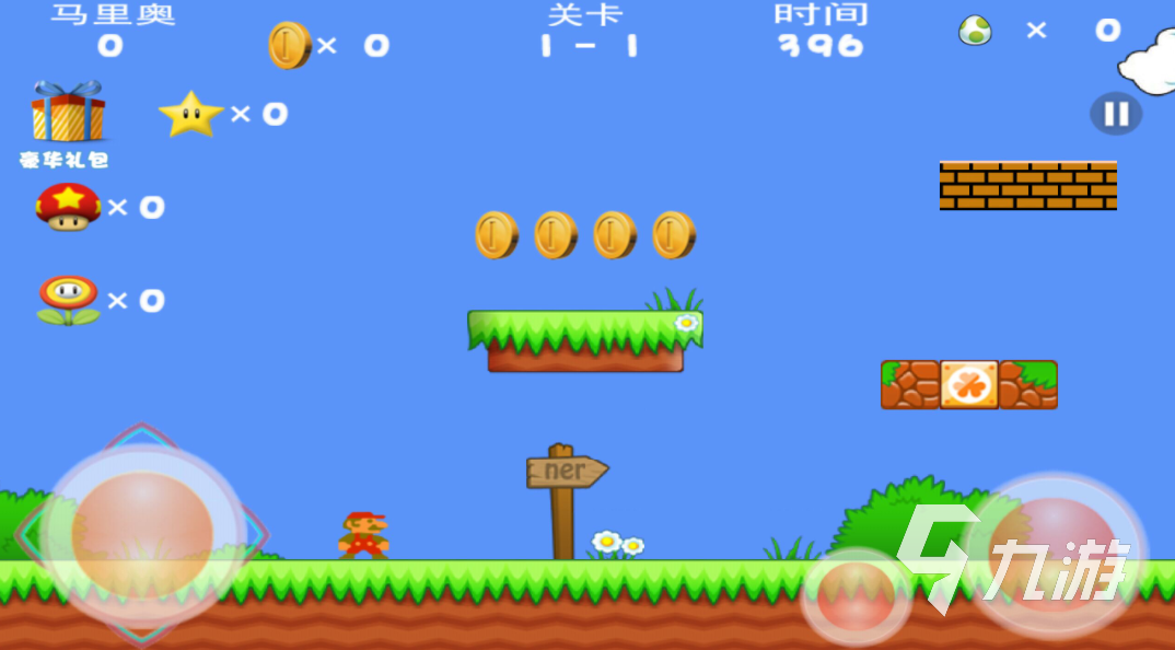 在流行這個游戲的時候,使用的還是游戲機或者是手柄電視機,現(xiàn)在為了可以讓玩家還原這種經(jīng)典的操控方式,游戲也在屏幕上還原了這些按鍵設(shè)計,玩家可以憑借童年的記憶點案這些案件控制人物前進后退,為了能夠讓玩家回憶起這個游戲,在畫面上使用的依舊是色彩非常豐富的像素設(shè)計。