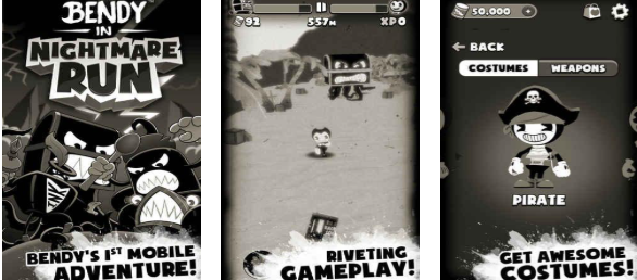 這是款畫風很像茶杯頭的豎屏黑白風跑酷游戲,具備夢魘的背景跟節(jié)奏歡快的跑酷元素,你將扮演動畫風格的主角班迪在不同夢境中奔跑,當然也有許多詭異的噩夢怪物會對你進行追殺,張弛有度的原始黑白風背景有著極強辨識度,輔助跑酷的道具沿途都可收集增加了跑酷快感,超有代入感的夢境世界冒險之旅等待著夢魘愛好者們參與。
