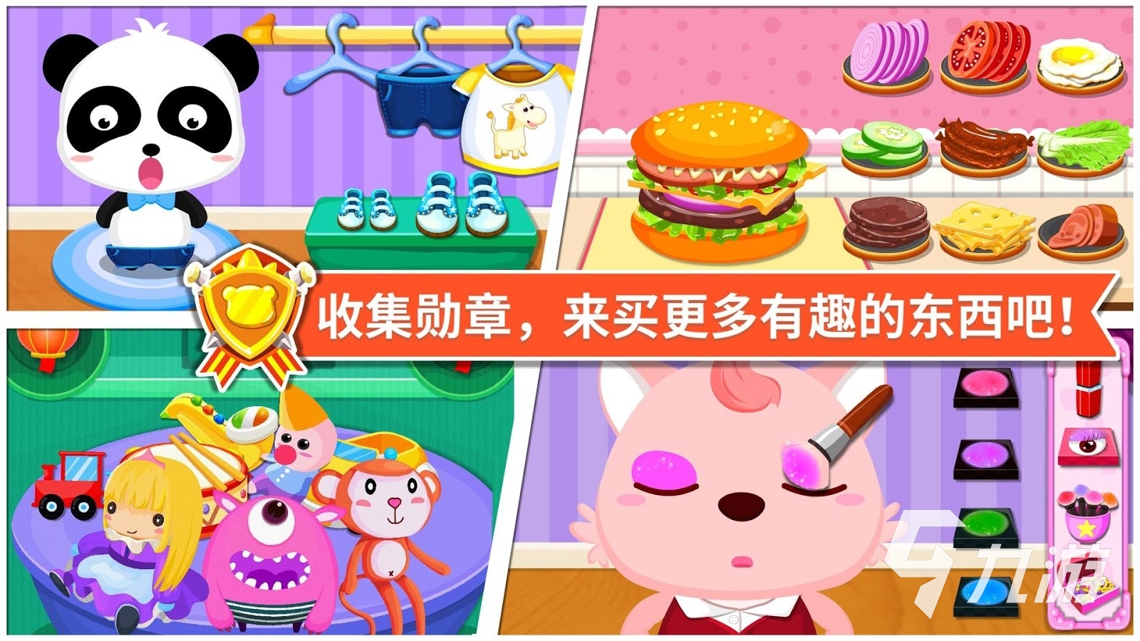 這款游戲以小熊貓為主角,模擬了超市購物的場景,玩家在游戲中可以認(rèn)識到各種各樣的生活用品,包括蛋糕,各類水果,洗漱用品,書包等等,還可以價格,還可以學(xué)會計算這些商品的價格,是一款風(fēng)格非??蓯鄣某匈徫镉螒?,特別能夠吸引寶寶的目光,玩家通過新收集勛章的方式,就能夠在游戲中購買到更多的東西。