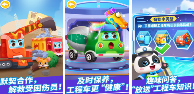 寶寶神奇汽車手游主要讓玩家玩汽車組裝和體驗不同汽車的用途,可以自己選零件拼汽車,不管是敞篷跑車還是摩托車,都能拼出自己喜歡的樣子,有時候工程車壞了得幫忙檢查,把污泥清掉、修好壞掉的齒輪,還能開著農(nóng)用車去農(nóng)場干活,用耕地車翻地、澆水車澆水,或者開校車接小朋友,開的時候要遵守交通規(guī)則,慢慢知道不同汽車有不同的用處。