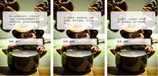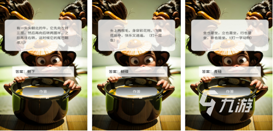 將大量知識內(nèi)容包含在一起,比如有天文地理以及古詩成語等等,每個關(guān)卡都是由猴子來出題,在看到隨機出現(xiàn)的題目時,背后又有相應(yīng)的提示,比如打一昆蟲或者打一動物等等。你在下方的答案橫線上,輸出正確的答案,參與挑戰(zhàn),當(dāng)回答正確后即可解鎖更多關(guān)卡。
