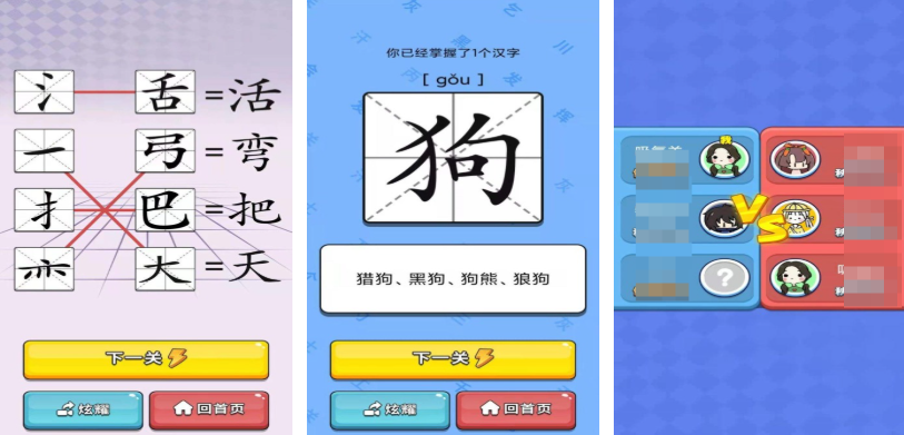 這是款包含著眾多識(shí)字互動(dòng)玩法的豎屏益智類游戲,能讓玩家們?cè)陉P(guān)卡中學(xué)習(xí)到形形色色的漢字知識(shí),偏旁部首連線與識(shí)字pk等特殊玩法可玩性極高,需要消耗體力解鎖關(guān)卡克制了孩子的游戲時(shí)間,交互性極高且提供的漢字謎題也極為深刻,家長們可以試著與孩子一起挑戰(zhàn)漢字關(guān)卡,沉浸式學(xué)習(xí)漢字的游戲內(nèi)容可玩性更高。