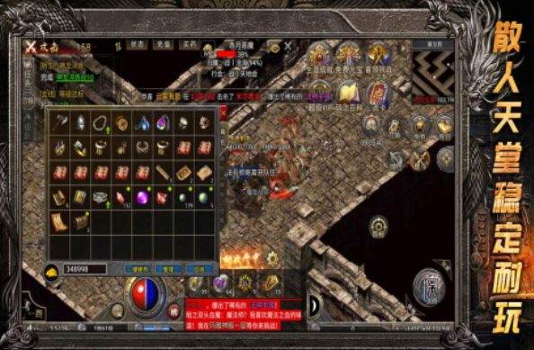 該游戲里的職業(yè),想必大家極為熟悉,正是經(jīng)典的戰(zhàn)法道,大家能隨便選擇。游戲會為大家精心創(chuàng)造海量boss,給大家發(fā)揮身手的舞臺。而且boss死后能夠有高爆率得到神級武器裝備,擁有神器裝備不再是一個夢。游戲還有多人玩法,大家能夠約上幾個舊友,再次體驗并肩合作對付boss的快感,而且你們之間的交情將更深。
