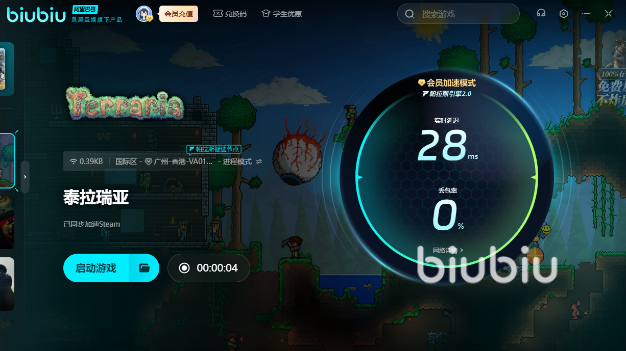 泰拉瑞亞作為膾炙人口的冒險佳作,一經(jīng)發(fā)售就在全球之間掀起了波浪,如今暫時還沒有上線國服。為了來到這一片像素世界,我們要用上biubiu,加速后才能自由冒險!新用戶的話可獲得3小時的免費(fèi)加速;另外新老用戶輸入【biubiu不卡頓】,即可額外領(lǐng)取三天免費(fèi)加速。如果在挖掘資源的過程中太高,有可能被周圍的小怪消滅,更別談獲得強(qiáng)大的裝備了。所以要用加速器,還能進(jìn)一步加快發(fā)育,獲取海量資源。