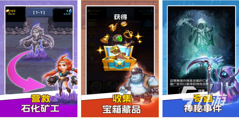 本作是款氣氛十分輕松的魔幻主題挖礦類型游戲,放置挖礦的基礎(chǔ)操作并無任何的難度,營救礦工和收集道具等超多玩法也值得挑戰(zhàn),在挖礦過程中能觸發(fā)許許多多的奇遇事件,多種地形也會讓大家遇到形形色色的神秘生物,愉快悠閑的挖礦過程會幫助大家舒緩壓力,開啟寶箱也有機會胡得更多礦脈方面的資源。