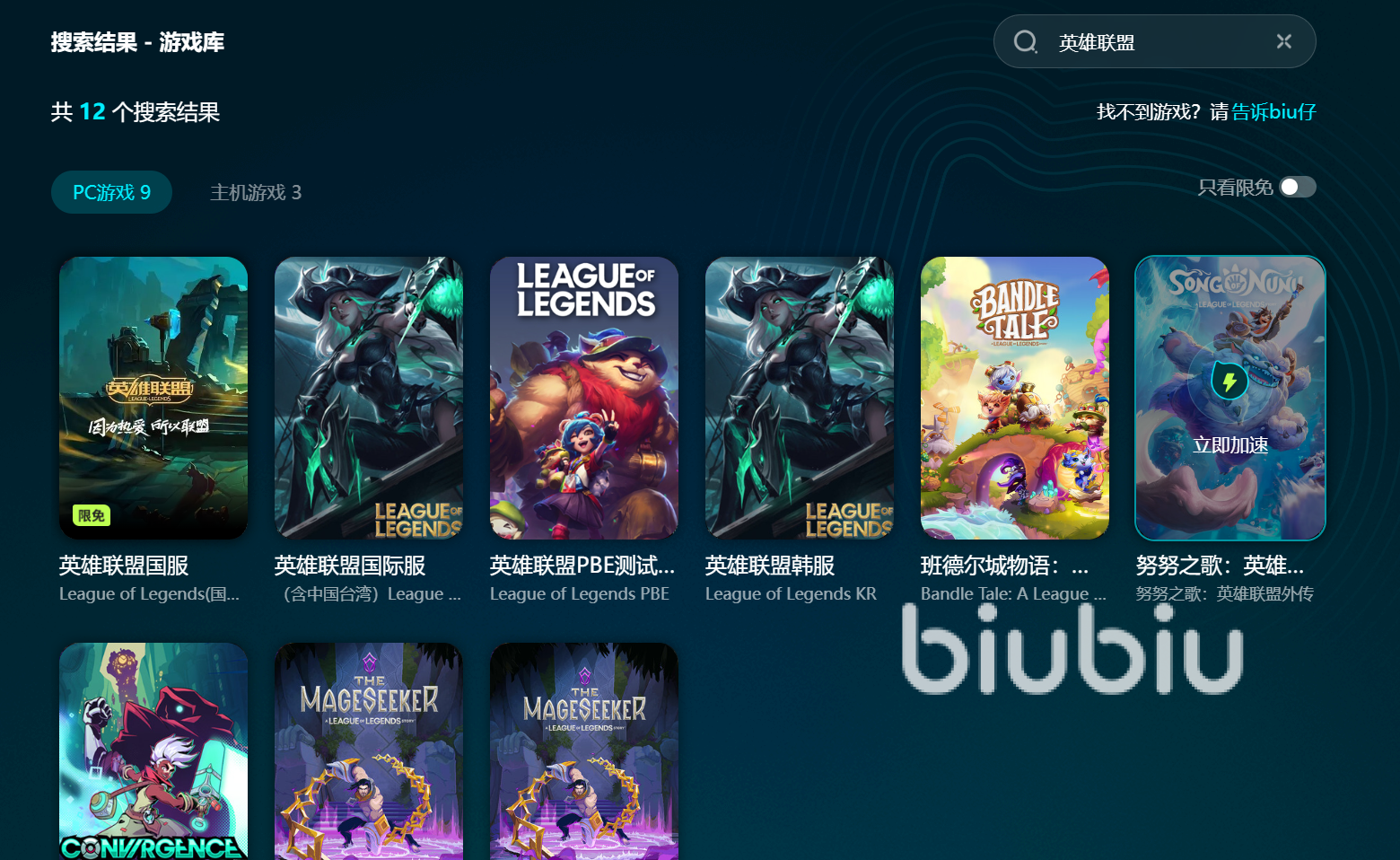 biubiu加速器絕對是廣大玩家不可錯(cuò)過的神器。它不僅具備極高的性價(jià)比,價(jià)格親民,而且支持全平臺(tái)加速,能夠?yàn)楦鞣N端口軟件提供無縫加速,無論是PC端的《英雄聯(lián)盟》還是熱門的手游,biubiu都能為你提供穩(wěn)定、低延遲的網(wǎng)絡(luò)連接。無論你是在暢玩競技游戲,還是體驗(yàn)大型多人在線游戲,biubiu都能確保你擁有流暢的網(wǎng)絡(luò)環(huán)境,讓每一場對戰(zhàn)都無后顧之憂。