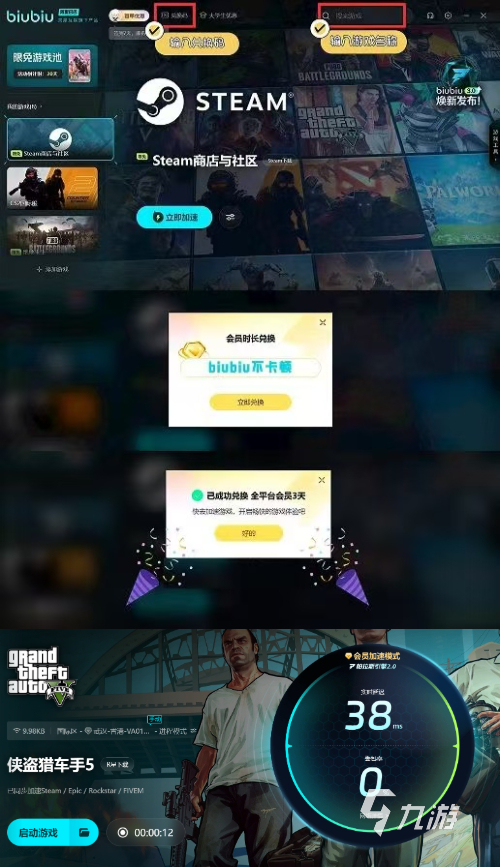 biubiu加速器為新用戶提供3小時(shí)免費(fèi)加速,除了新用戶福利,biubiu加速器還提供了專屬兌換碼:【biubiu不卡頓】,玩家可以通過(guò)該兌換碼領(lǐng)取3天全平臺(tái)會(huì)員。