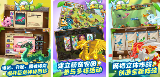 龍族養(yǎng)成與進(jìn)化模式,這里有超過上百種形態(tài)各異的龍族,通過捕捉、馴化等多種方式自由培養(yǎng)。具有相當(dāng)獨(dú)特的戰(zhàn)斗策略模式,需要根據(jù)屬性相克直接定位等多種不同的方法,詳細(xì)了解具體的克制關(guān)系,并搭配相應(yīng)的陣容。有獨(dú)特的競(jìng)技場(chǎng),全面增加玩家之間的互動(dòng)性,具有相當(dāng)獨(dú)特的城鎮(zhèn)diy可自由布局海島,建造個(gè)性化巨龍城堡。