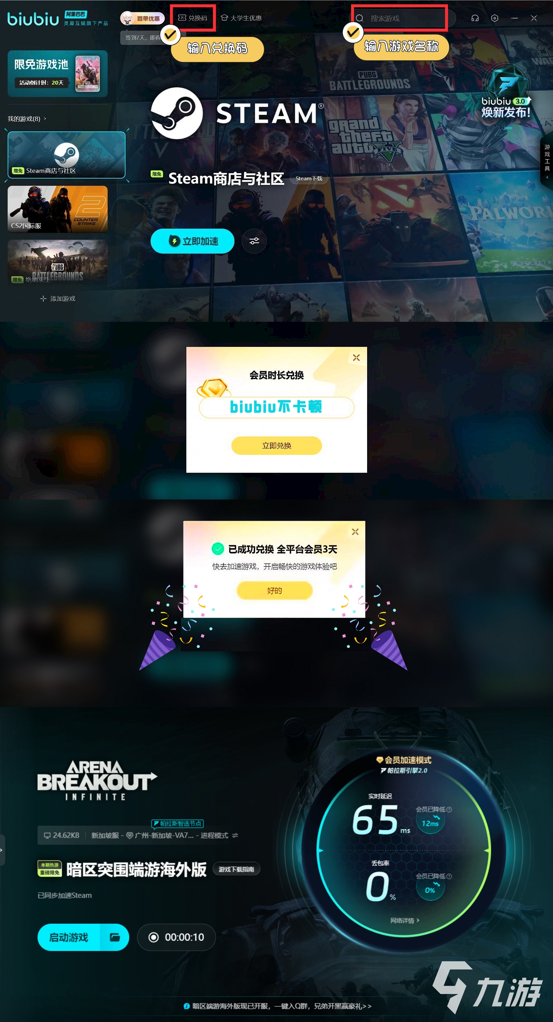 總體來(lái)說(shuō),聲紋對(duì)于各位玩家的幫助是非常明顯的,所以推薦各位玩家更好地了解和使用這個(gè)強(qiáng)大的功能,并且如果各位玩家在闖關(guān)的過(guò)程中發(fā)現(xiàn)自己的網(wǎng)絡(luò)延遲比較高,不穩(wěn)定的話,可以考慮通過(guò)biubiu來(lái)進(jìn)行網(wǎng)絡(luò)優(yōu)化。,現(xiàn)在新用戶可得24h的加速,而作為平臺(tái)用戶,只需去輸入【biubiu不卡頓】即可得72h的加速,新用戶疊加起來(lái)就是96h。另外,暗區(qū)突圍無(wú)限首月限免加速哦~