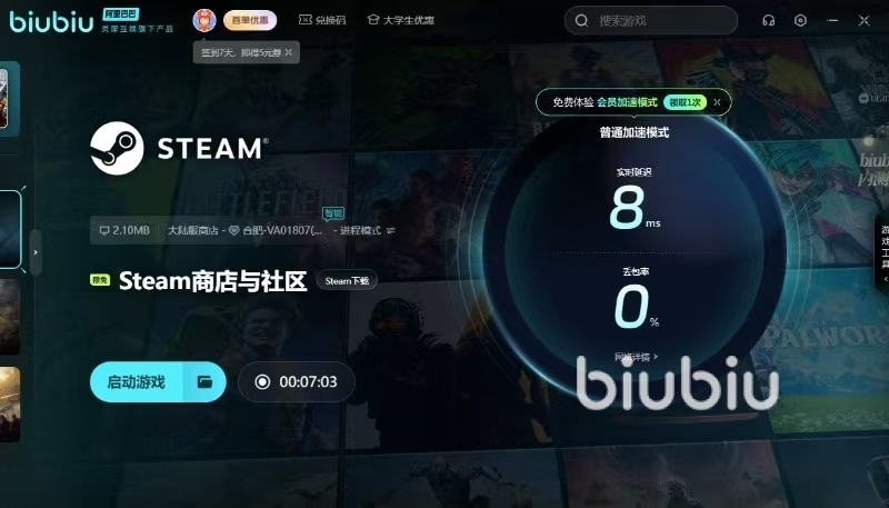 新用戶在biubiu加速器有雙重驚喜,不僅注冊(cè)能獲得3小時(shí)免費(fèi)加速,輸入【biubiu不掉線】還能和老用戶一樣領(lǐng)取72小時(shí)加速時(shí)長(zhǎng),合起來(lái)75小時(shí),助你在游戲中盡情闖蕩。