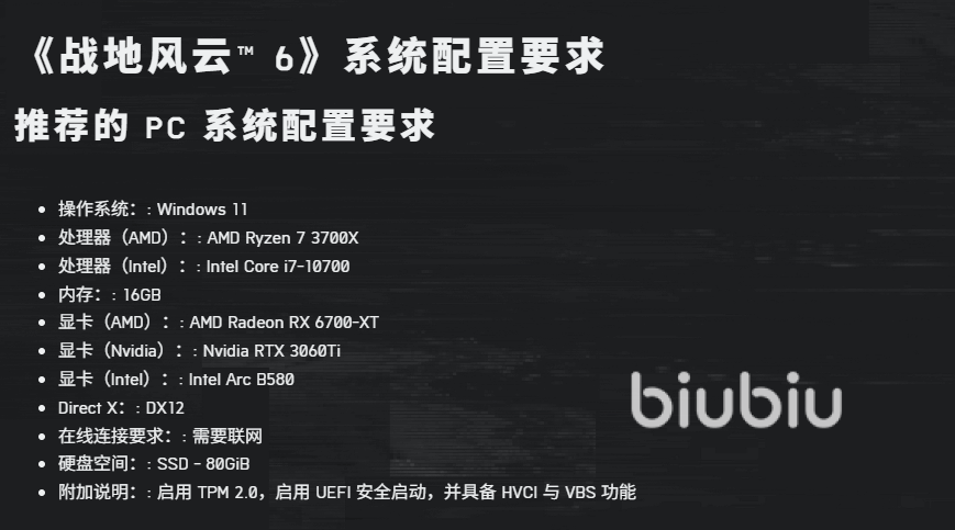 戰(zhàn)地6配置要求是什么 戰(zhàn)地6配置要求分享