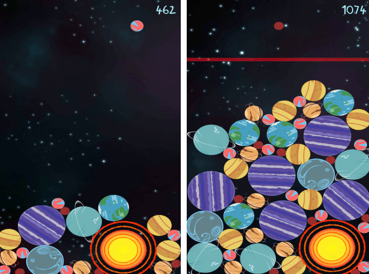 同樣也是玩法比較簡單,可進入以星球這種特色環(huán)境的游戲世界,進行合成的??煽吹嚼锩鎿碛懈鞣N大小不一,顏色也不同的星球,通過找到兩個完全一樣的以后,不斷的的合成,以后使星球變得越來越大,玩家也能得到更豐富的獎勵。由于在合成的過程中,心情會越來越多,所以要在星球不斷掉落的時候,其實這找到大小顏色相同的。