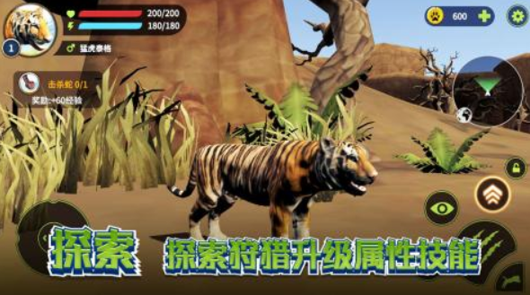 老虎是叢林中的霸主,通過模擬老虎這個(gè)游戲,可以扮演野外的一只老虎,要在這里開啟真實(shí)的叢林生存,為了能更有代入感,老虎的各項(xiàng)數(shù)值都會(huì)在游戲里呈現(xiàn),同時(shí)老虎也會(huì)有不同的捕獵方式,要操控老虎在場(chǎng)景里移動(dòng),并且利用各項(xiàng)不同的技能捕獵動(dòng)物,只有在順利捕獵成功之后,才能維護(hù)老虎的身體機(jī)能。