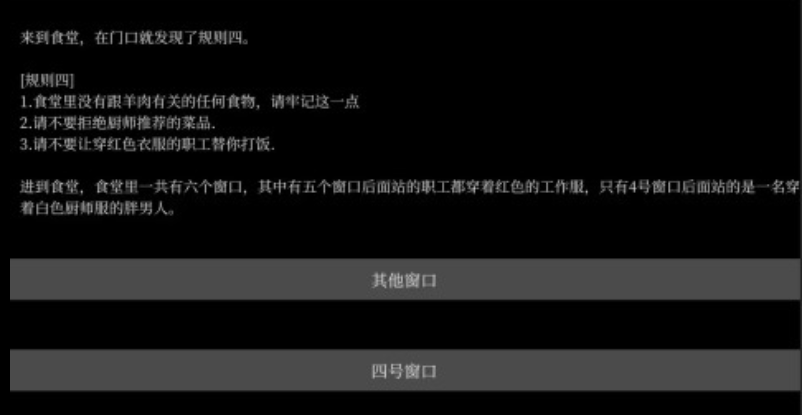 這是一款十分考驗邏輯思維能力的視覺小說游戲,結合了近幾年十分流行的“規(guī)則怪談”元素,玩家進入游戲后需要盡快消化理解目前所面臨的規(guī)則,通過推理判斷根據(jù)規(guī)則給出的信息進行選擇,一旦選擇錯誤就會進入死亡結局,重新開始。這個游戲看似簡單,但各個規(guī)則背后隱藏的信息量都是十分巨大的,不僅考驗玩家分析情報的能力,也很考驗玩家的風險概率評估能力,想試試自己能不能活著通關嗎?那就快來挑戰(zhàn)吧!