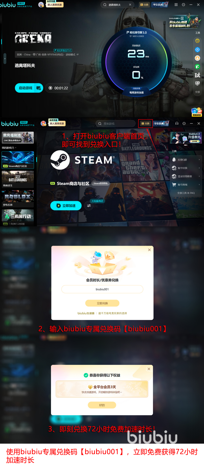 剛注冊(cè)的新用戶別錯(cuò)過!現(xiàn)在新注冊(cè)即可免費(fèi)領(lǐng)取24小時(shí)加速時(shí)長(zhǎng),再輸入兌換碼 【biubiu001】,還能額外獲得3天加速時(shí)長(zhǎng),一共就是整整96小時(shí)暢快加速!更值得一提的是,biubiu邀請(qǐng)了人氣達(dá)人左梓軒擔(dān)任產(chǎn)品體驗(yàn)官,為優(yōu)化體驗(yàn)提出了不少實(shí)用建議。如今,biu仔完成了全面調(diào)優(yōu)升級(jí),全新帕拉斯3.0引擎正式上線,為大家?guī)砀禹樆?、穩(wěn)定的加速體驗(yàn),狀態(tài)可以說是——頂峰狀態(tài)!