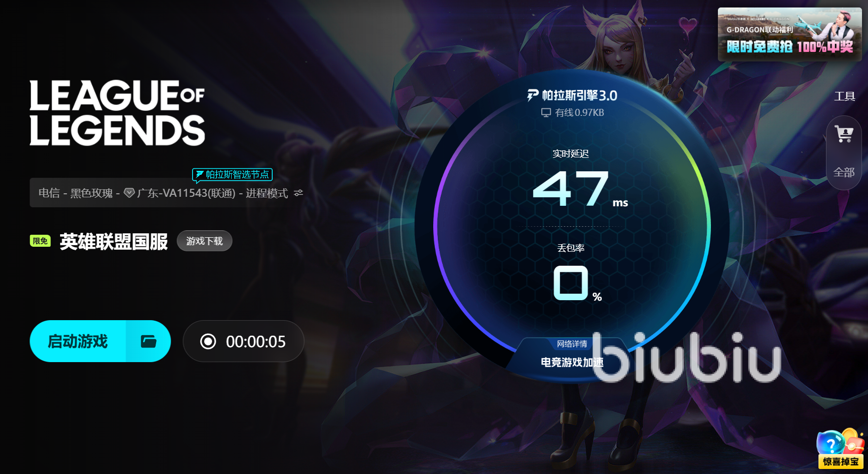 如果你也正在為網(wǎng)絡不穩(wěn)定、頻繁掉線、延遲過高別擔心,使用biubiu游戲加速器后,網(wǎng)絡全程穩(wěn)定不卡,異常情況顯著減少,玩家能把所有精力投入到操作和戰(zhàn)術(shù)配合中,發(fā)揮最佳水平。而不是被頻繁的網(wǎng)絡問題打斷,讓你暢享完整、順滑的游戲體驗。