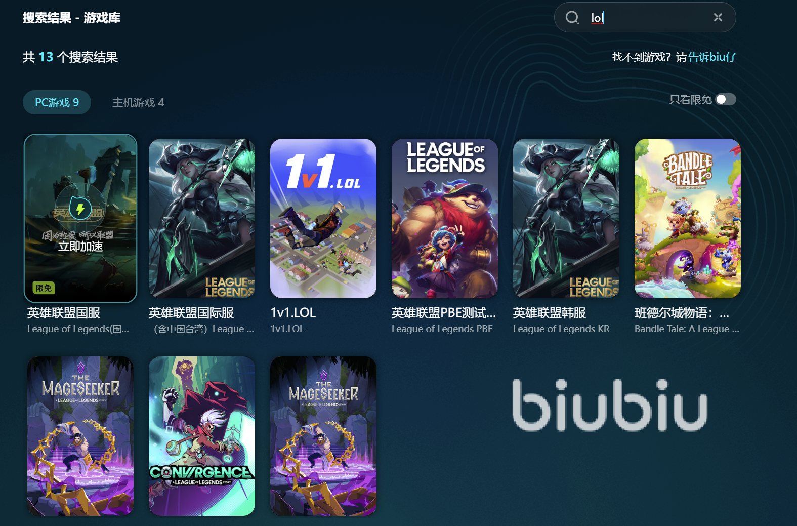 想免費(fèi)提升游戲下載更新速度,還能在游戲過程中享受流暢加速體驗(yàn)?那么這款加速器絕對(duì)是你的不二之選。目前該平臺(tái)已經(jīng)開放了英雄聯(lián)盟的限免加速服務(wù),而且除了國(guó)服外,它還涵蓋了多款lol系列游戲。要是你還有其他想玩的游戲,直接在加速軟件里搜一搜,它那強(qiáng)大的資源庫絕對(duì)能給你帶來驚喜。支持全球上萬款游戲的加速,無論你想玩什么,它都能輕松應(yīng)對(duì)。