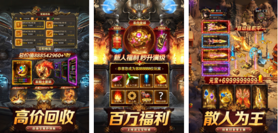 傳承了經(jīng)典的傳奇玩法,經(jīng)典的三大職業(yè),可讓大家隨意挑選,所有的裝備以及稀缺物品,都可通過爆裝的方式輕松獲得,其中有大量的boss類型等你來挑戰(zhàn)??赡軇倓傮w驗(yàn)游戲時其中的boss戰(zhàn)斗力特別薄弱,輕而易舉就能將其打敗,但是在面對終極boss時卻需釋放出自己的大招。