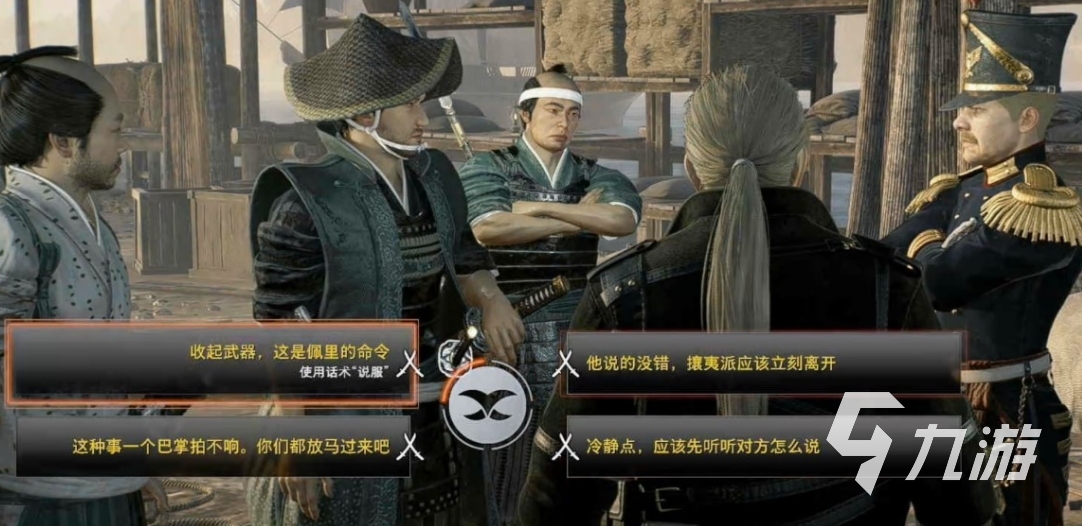 玩家在找到npc后,就能夠自動(dòng)觸發(fā)劇情,這和玩家之前救過的商人位置是接近的,此時(shí)npc會(huì)告訴玩家,最近有攘夷派的武士在和國外軍隊(duì)發(fā)生沖突,希望玩家能夠去和平解決這個(gè)事情。