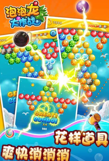 這里面加入了很多協(xié)同性的元素,玩起來真的是熱鬧非凡,你可以跟自己的小伙伴一起合作來感受各種有趣的動作,還可以跟其他玩家展開實時對決,通過旋轉(zhuǎn)的泡泡來打出各種各樣的軌跡,跟對方比拼各種消除以及技巧互動感,超帶料,還有很多光線效果也是特別明亮的,讓你直接有一種視覺被沖擊的感覺。