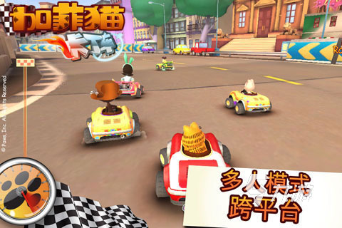 各位在這里將會(huì)與最熟悉的加菲貓一起參與一場(chǎng)又一場(chǎng)的卡丁車比賽,除了加菲貓還有其他特別可愛的卡通人物等著你解鎖。系統(tǒng)之中為各位提供了16種獨(dú)具風(fēng)格的賽道,并且每個(gè)賽道的場(chǎng)景都與加菲貓有關(guān),讓各位在游玩的時(shí)候還能回味兒時(shí)的美好時(shí)光。在賽跑的過(guò)程中會(huì)遇到各種道具,能夠幫助自己甩開敵人或者加速前進(jìn),這樣就可以快速獲得最終的勝利。此外,還可以情侶組隊(duì)游玩哦。
