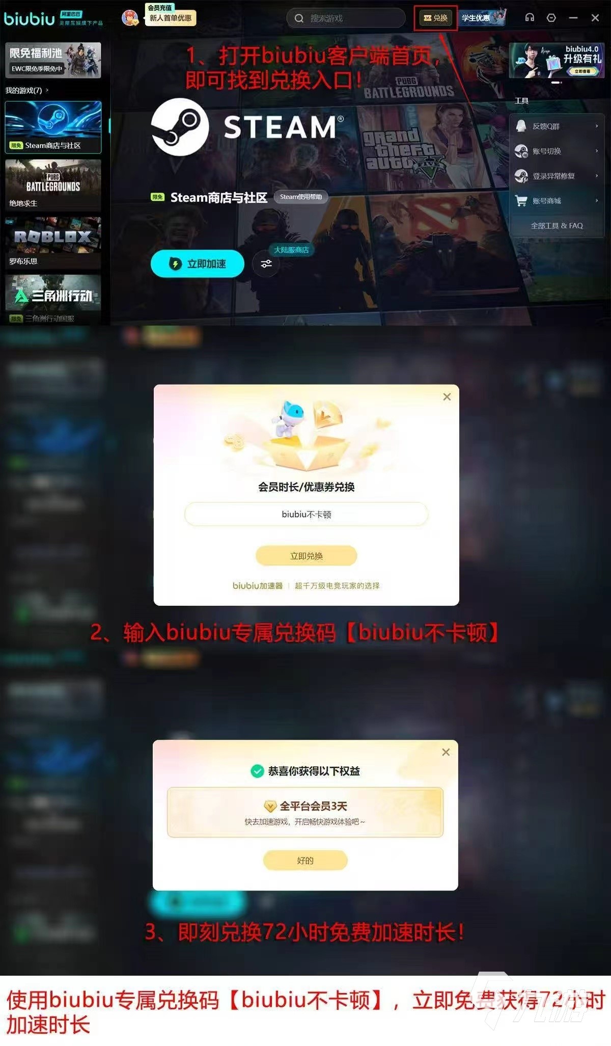 想薅一波免費(fèi)福利的小伙伴不妨瞄一眼biubiu加速器,現(xiàn)在它可是放出了一波相當(dāng)香的先享后買活動(dòng)!只要你是新用戶,注冊賬號(hào)后立馬就能領(lǐng)取專屬的24小時(shí)加速時(shí)長,完全0門檻暢玩不花錢。而且不管你是老用戶還是新玩家,只要在兌換界面輸入口令【biubiu不卡頓】,還能再解鎖額外的72小時(shí)免費(fèi)時(shí)長,也就是說,新手一口氣就能獲得整整96小時(shí)的免費(fèi)加速服務(wù),游戲從此不卡不掉線,盡情爽玩四天都沒問題!