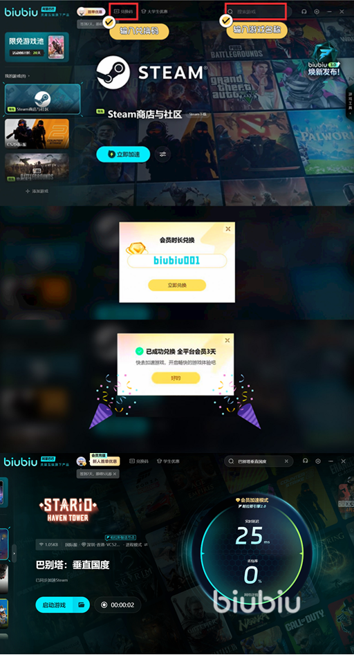 對(duì)于新用戶來說,biubiu加速器還提供了一定的免費(fèi)試用時(shí)間,讓玩家在注冊(cè)后能夠體驗(yàn)加速效果,得到24小時(shí)的免費(fèi)加速。這對(duì)于那些剛接觸加速器的玩家來說,這是一個(gè)非常實(shí)用的體驗(yàn)機(jī)會(huì)。通過這段時(shí)間的使用,玩家能夠感受到加速器帶來的變化,并決定是否繼續(xù)使用付費(fèi)服務(wù)。在試玩之后,可以用【biubiu001】兌換免費(fèi)的72小時(shí)來加速,這樣就有96小時(shí)的開心加速時(shí)間了。下載和游戲過程的流暢性直接影響到游戲的整體體驗(yàn),解決下載慢的問題是保證游戲樂趣的第一步。