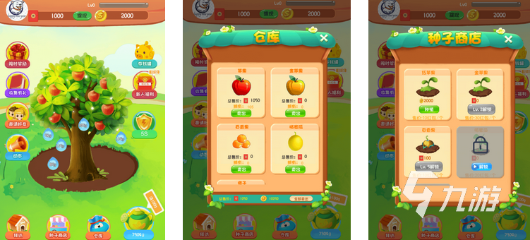 果在蔬的經(jīng)營(yíng)中,玩家可以在倉(cāng)庫(kù)中選擇種植的品種,不僅有蘋(píng)果和百香果,還有哈密瓜,通過(guò)澆水和施肥等操作進(jìn)行培養(yǎng)。成熟之后,呈現(xiàn)枝繁葉茂的樣子,玩家可以進(jìn)行賣(mài)出,并在右側(cè)的存錢(qián)罐中查找余額。在其他玩法中,玩家不僅可以進(jìn)行拜訪,而且還可以在種子商店中發(fā)現(xiàn)潛在水果的苗,通過(guò)解鎖等方式進(jìn)行培養(yǎng)。