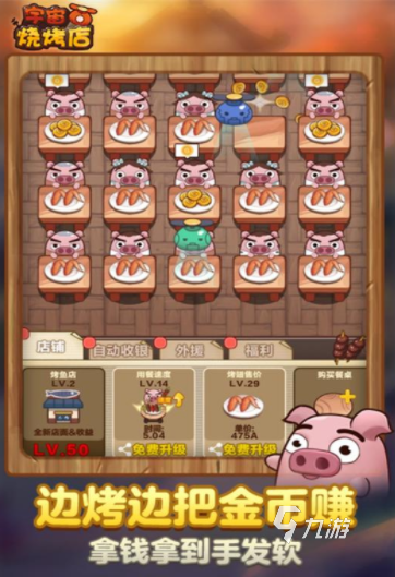 《宇宙燒烤店》是一塊讓玩家作為燒烤攤老板來體驗(yàn)?zāi)M經(jīng)營的游戲,玩家可以升級菜品、獲得優(yōu)秀的廚師服務(wù)員來提高小店的名聲,成為舉世聞名的燒烤店。